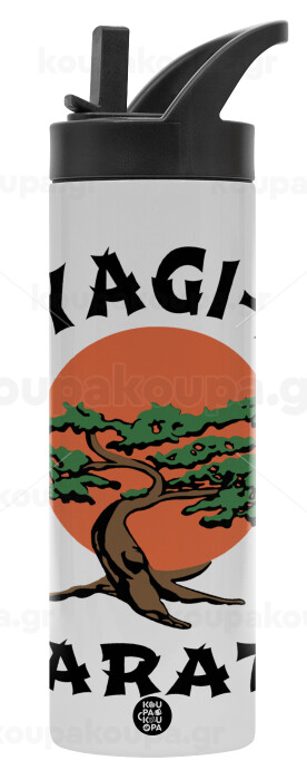Miyagi-do karate, Μεταλλικό παγούρι θερμός με καλαμάκι & χειρολαβή, ανοξείδωτο ατσάλι (Stainless steel 304), διπλού τοιχώματος, 600ml