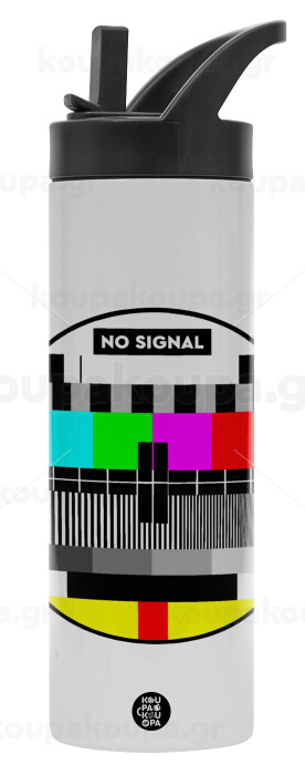 No signal, Μεταλλικό παγούρι θερμός με καλαμάκι & χειρολαβή, ανοξείδωτο ατσάλι (Stainless steel 304), διπλού τοιχώματος, 600ml