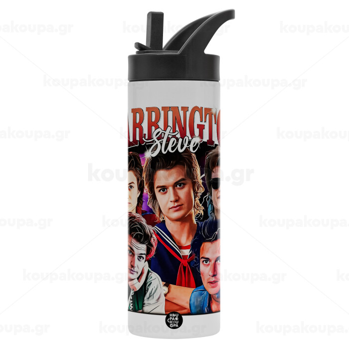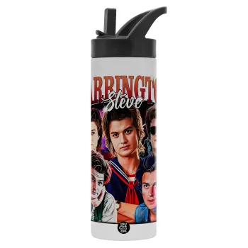 Steve Harrington, Stranger Things, Μεταλλικό παγούρι θερμός με καλαμάκι & χειρολαβή, ανοξείδωτο ατσάλι (Stainless steel 304), διπλού τοιχώματος, 600ml