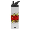BOOM!!!, Μεταλλικό παγούρι θερμός με καλαμάκι & χειρολαβή, ανοξείδωτο ατσάλι (Stainless steel 304), διπλού τοιχώματος, 600ml