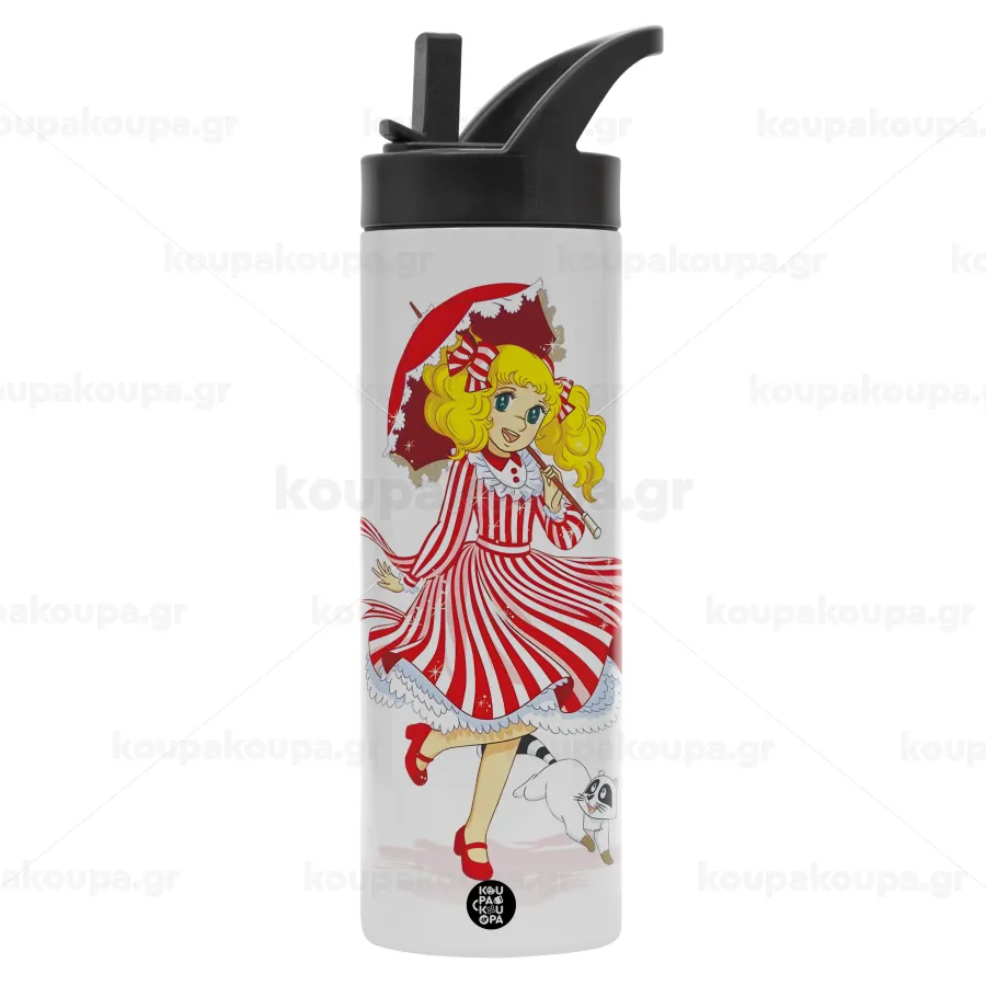 Candy, Μεταλλικό παγούρι θερμός με καλαμάκι & χειρολαβή, ανοξείδωτο ατσάλι (Stainless steel 304), διπλού τοιχώματος, 600ml