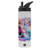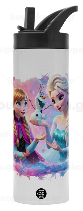 Έλσα & Άννα, Μεταλλικό παγούρι θερμός με καλαμάκι & χειρολαβή, ανοξείδωτο ατσάλι (Stainless steel 304), διπλού τοιχώματος, 600ml