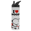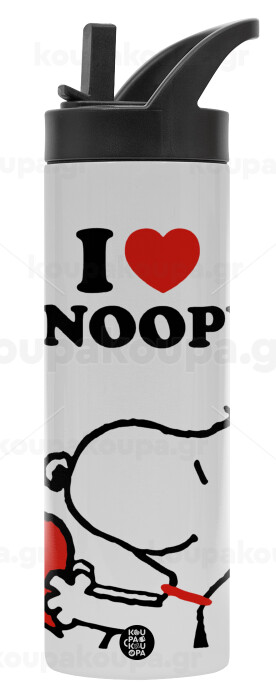 I LOVE SNOOPY, Μεταλλικό παγούρι θερμός με καλαμάκι & χειρολαβή, ανοξείδωτο ατσάλι (Stainless steel 304), διπλού τοιχώματος, 600ml