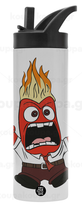 Inside Out θυμός, Μεταλλικό παγούρι θερμός με καλαμάκι & χειρολαβή, ανοξείδωτο ατσάλι (Stainless steel 304), διπλού τοιχώματος, 600ml