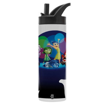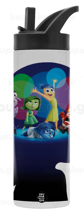 Τα Μυαλά που Κουβαλάς, Μεταλλικό παγούρι θερμός με καλαμάκι & χειρολαβή, ανοξείδωτο ατσάλι (Stainless steel 304), διπλού τοιχώματος, 600ml