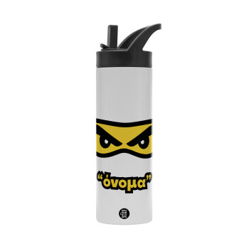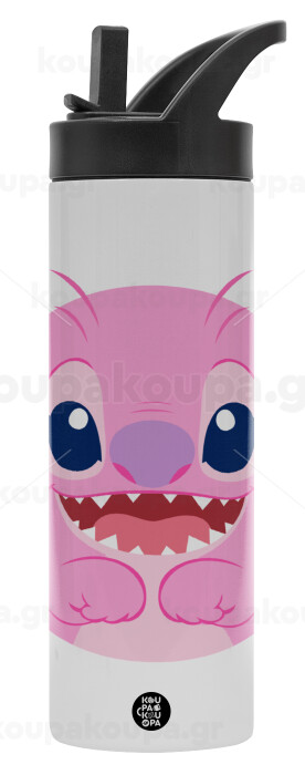 Lilo & Stitch Angel pink, Μεταλλικό παγούρι θερμός με καλαμάκι & χειρολαβή, ανοξείδωτο ατσάλι (Stainless steel 304), διπλού τοιχώματος, 600ml