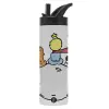 Little prince, Μεταλλικό παγούρι θερμός με καλαμάκι & χειρολαβή, ανοξείδωτο ατσάλι (Stainless steel 304), διπλού τοιχώματος, 600ml