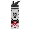 Μίκυ Μάους, Μεταλλικό παγούρι θερμός με καλαμάκι & χειρολαβή, ανοξείδωτο ατσάλι (Stainless steel 304), διπλού τοιχώματος, 600ml