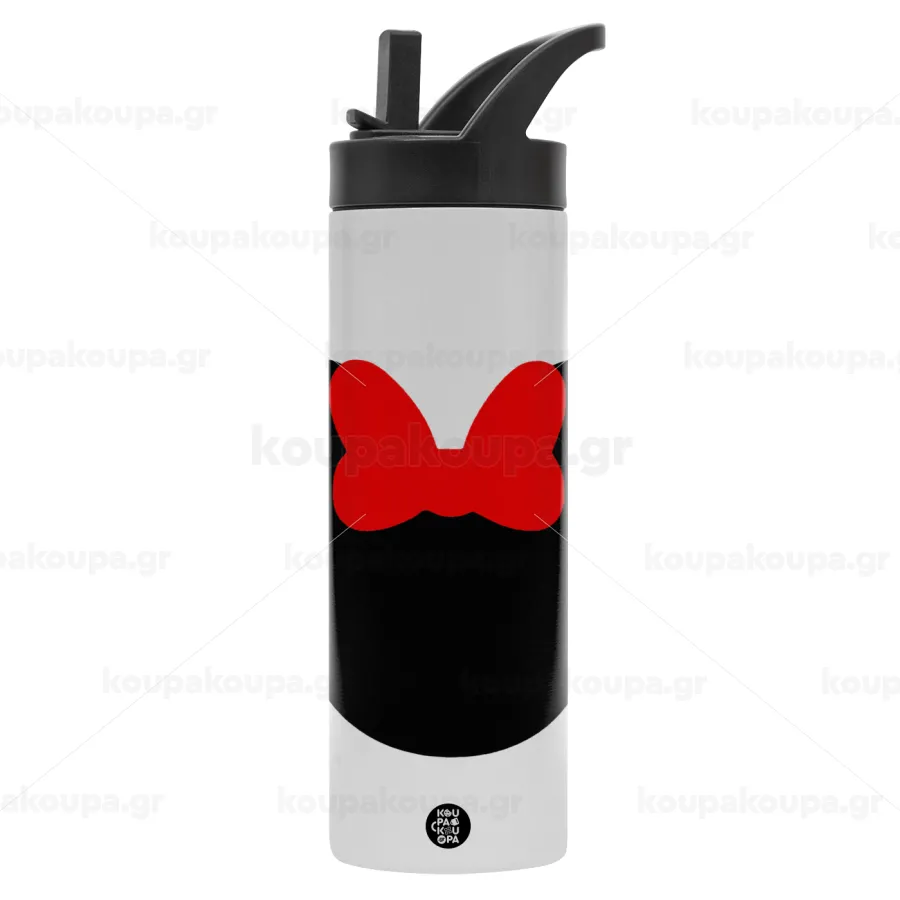 Minnie head, Μεταλλικό παγούρι θερμός με καλαμάκι & χειρολαβή, ανοξείδωτο ατσάλι (Stainless steel 304), διπλού τοιχώματος, 600ml