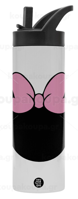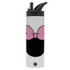mouse girl, Μεταλλικό παγούρι θερμός με καλαμάκι & χειρολαβή, ανοξείδωτο ατσάλι (Stainless steel 304), διπλού τοιχώματος, 600ml