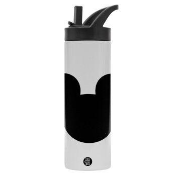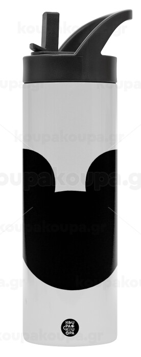 mouse man, Μεταλλικό παγούρι θερμός με καλαμάκι & χειρολαβή, ανοξείδωτο ατσάλι (Stainless steel 304), διπλού τοιχώματος, 600ml