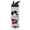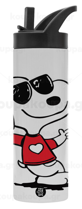 Snoopy καρδούλα, Μεταλλικό παγούρι θερμός με καλαμάκι & χειρολαβή, ανοξείδωτο ατσάλι (Stainless steel 304), διπλού τοιχώματος, 600ml