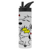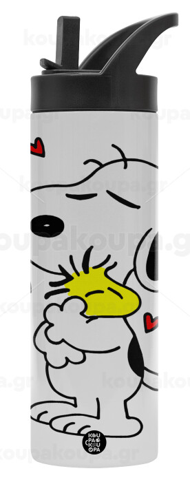 Snoopy Love, Μεταλλικό παγούρι θερμός με καλαμάκι & χειρολαβή, ανοξείδωτο ατσάλι (Stainless steel 304), διπλού τοιχώματος, 600ml