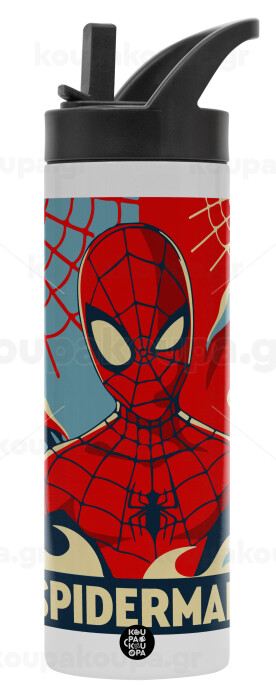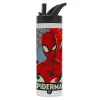 Spiderman kid, Μεταλλικό παγούρι θερμός με καλαμάκι & χειρολαβή, ανοξείδωτο ατσάλι (Stainless steel 304), διπλού τοιχώματος, 600ml