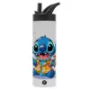 Stitch Ice cream, Μεταλλικό παγούρι θερμός με καλαμάκι & χειρολαβή, ανοξείδωτο ατσάλι (Stainless steel 304), διπλού τοιχώματος, 600ml
