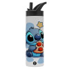 Stitch Pizza, Μεταλλικό παγούρι θερμός με καλαμάκι & χειρολαβή, ανοξείδωτο ατσάλι (Stainless steel 304), διπλού τοιχώματος, 600ml