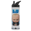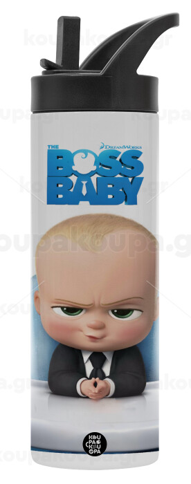 The boss baby, Μεταλλικό παγούρι θερμός με καλαμάκι & χειρολαβή, ανοξείδωτο ατσάλι (Stainless steel 304), διπλού τοιχώματος, 600ml