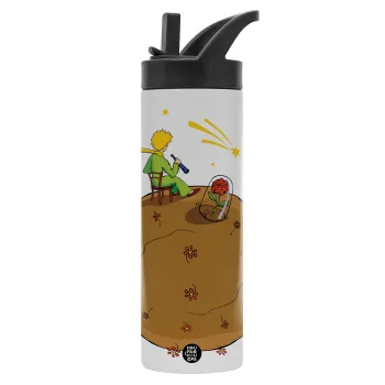 Ο μικρός πρίγκιπας planet, Μεταλλικό παγούρι θερμός με καλαμάκι & χειρολαβή, ανοξείδωτο ατσάλι (Stainless steel 304), διπλού τοιχώματος, 600ml