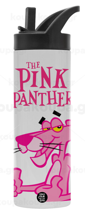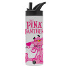 The pink panther, Μεταλλικό παγούρι θερμός με καλαμάκι & χειρολαβή, ανοξείδωτο ατσάλι (Stainless steel 304), διπλού τοιχώματος, 600ml