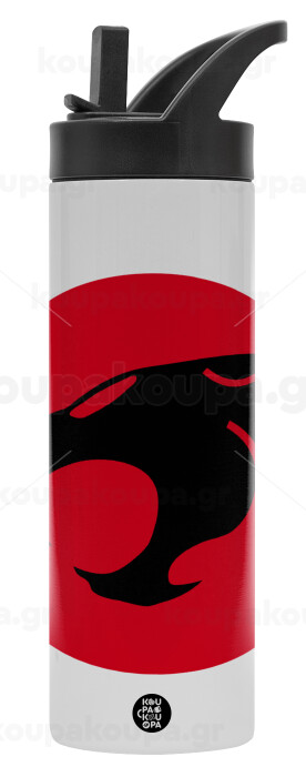 Thundercats, Μεταλλικό παγούρι θερμός με καλαμάκι & χειρολαβή, ανοξείδωτο ατσάλι (Stainless steel 304), διπλού τοιχώματος, 600ml