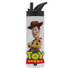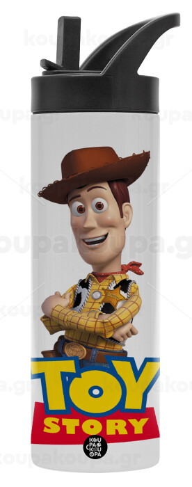 Woody cowboy, Μεταλλικό παγούρι θερμός με καλαμάκι & χειρολαβή, ανοξείδωτο ατσάλι (Stainless steel 304), διπλού τοιχώματος, 600ml