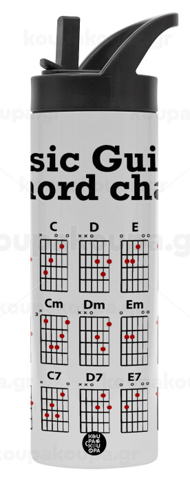 Συγχορδίες κιθάρας, Μεταλλικό παγούρι θερμός με καλαμάκι & χειρολαβή, ανοξείδωτο ατσάλι (Stainless steel 304), διπλού τοιχώματος, 600ml