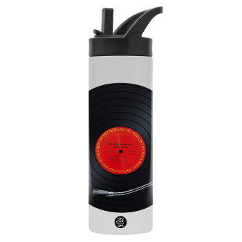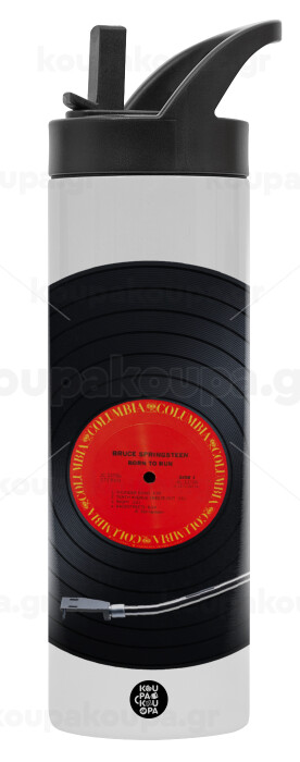 Columbia records bruce springsteen, Μεταλλικό παγούρι θερμός με καλαμάκι & χειρολαβή, ανοξείδωτο ατσάλι (Stainless steel 304), διπλού τοιχώματος, 600ml