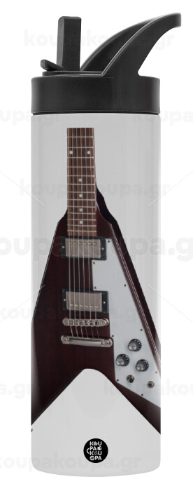 Guitar flying V, Μεταλλικό παγούρι θερμός με καλαμάκι & χειρολαβή, ανοξείδωτο ατσάλι (Stainless steel 304), διπλού τοιχώματος, 600ml