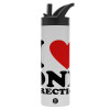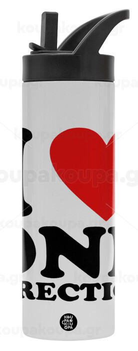 I Love, One Direction, Μεταλλικό παγούρι θερμός με καλαμάκι & χειρολαβή, ανοξείδωτο ατσάλι (Stainless steel 304), διπλού τοιχώματος, 600ml