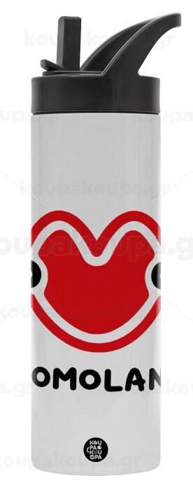 Momoland, Μεταλλικό παγούρι θερμός με καλαμάκι & χειρολαβή, ανοξείδωτο ατσάλι (Stainless steel 304), διπλού τοιχώματος, 600ml