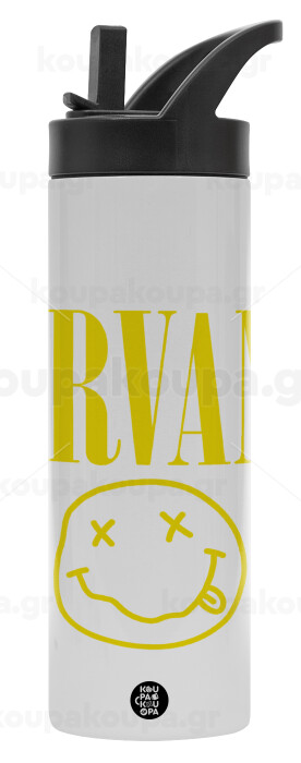 Nirvana, Μεταλλικό παγούρι θερμός με καλαμάκι & χειρολαβή, ανοξείδωτο ατσάλι (Stainless steel 304), διπλού τοιχώματος, 600ml
