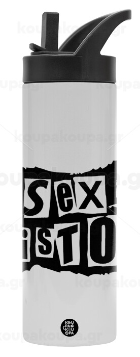 Sex Pistols, Μεταλλικό παγούρι θερμός με καλαμάκι & χειρολαβή, ανοξείδωτο ατσάλι (Stainless steel 304), διπλού τοιχώματος, 600ml