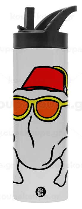 Friends turkey, Μεταλλικό παγούρι θερμός με καλαμάκι & χειρολαβή, ανοξείδωτο ατσάλι (Stainless steel 304), διπλού τοιχώματος, 600ml