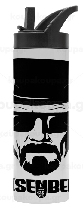Heisenberg breaking bad, Μεταλλικό παγούρι θερμός με καλαμάκι & χειρολαβή, ανοξείδωτο ατσάλι (Stainless steel 304), διπλού τοιχώματος, 600ml