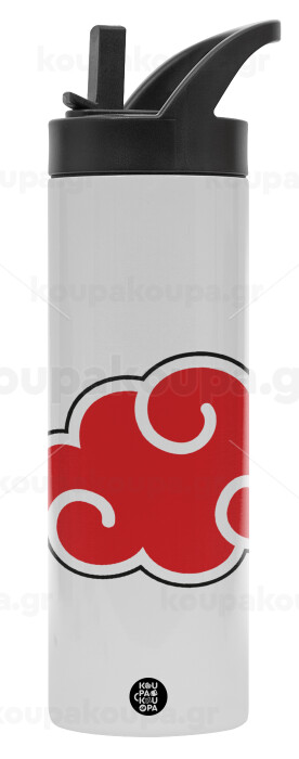 Naruto Akatsuki Cloud, Μεταλλικό παγούρι θερμός με καλαμάκι & χειρολαβή, ανοξείδωτο ατσάλι (Stainless steel 304), διπλού τοιχώματος, 600ml