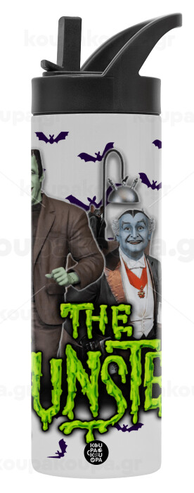 The munsters, Μεταλλικό παγούρι θερμός με καλαμάκι & χειρολαβή, ανοξείδωτο ατσάλι (Stainless steel 304), διπλού τοιχώματος, 600ml