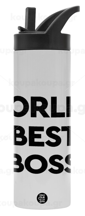 World's best boss, Μεταλλικό παγούρι θερμός με καλαμάκι & χειρολαβή, ανοξείδωτο ατσάλι (Stainless steel 304), διπλού τοιχώματος, 600ml
