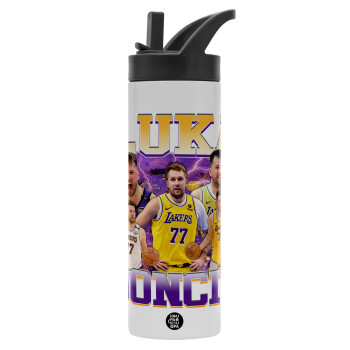 Μεταλλικό παγούρι θερμός με καλαμάκι & χειρολαβή, ανοξείδωτο ατσάλι (Stainless steel 304), διπλού τοιχώματος, 600ml με θέμα Αθλητικά