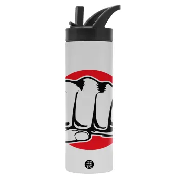 Γροθιά (punch), Μεταλλικό παγούρι θερμός με καλαμάκι & χειρολαβή, ανοξείδωτο ατσάλι (Stainless steel 304), διπλού τοιχώματος, 600ml