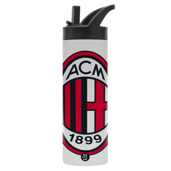 ACM, Μεταλλικό παγούρι θερμός με καλαμάκι & χειρολαβή, ανοξείδωτο ατσάλι (Stainless steel 304), διπλού τοιχώματος, 600ml