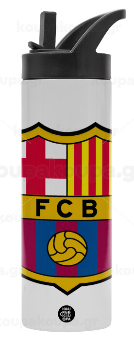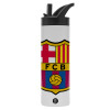 Barcelona FC, Μεταλλικό παγούρι θερμός με καλαμάκι & χειρολαβή, ανοξείδωτο ατσάλι (Stainless steel 304), διπλού τοιχώματος, 600ml