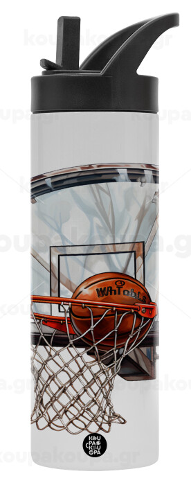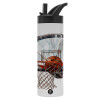Basketball, Μεταλλικό παγούρι θερμός με καλαμάκι & χειρολαβή, ανοξείδωτο ατσάλι (Stainless steel 304), διπλού τοιχώματος, 600ml
