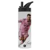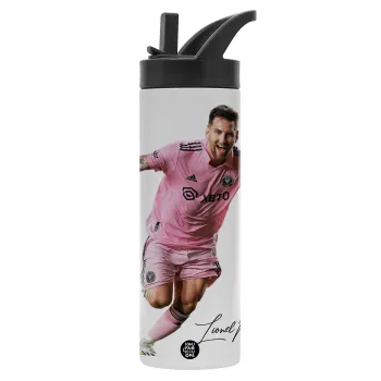 Lionel Messi inter miami jersey, Μεταλλικό παγούρι θερμός με καλαμάκι & χειρολαβή, ανοξείδωτο ατσάλι (Stainless steel 304), διπλού τοιχώματος, 600ml