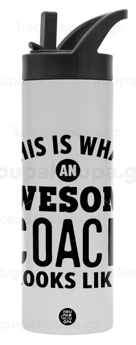This is what an awesome COACH looks like!, Μεταλλικό παγούρι θερμός με καλαμάκι & χειρολαβή, ανοξείδωτο ατσάλι (Stainless steel 304), διπλού τοιχώματος, 600ml