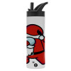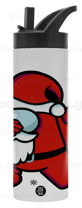 Among US Xmas, Μεταλλικό παγούρι θερμός με καλαμάκι & χειρολαβή, ανοξείδωτο ατσάλι (Stainless steel 304), διπλού τοιχώματος, 600ml