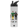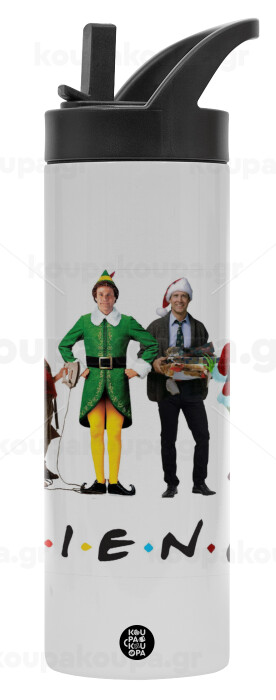 Christmas FRIENDS, Μεταλλικό παγούρι θερμός με καλαμάκι & χειρολαβή, ανοξείδωτο ατσάλι (Stainless steel 304), διπλού τοιχώματος, 600ml