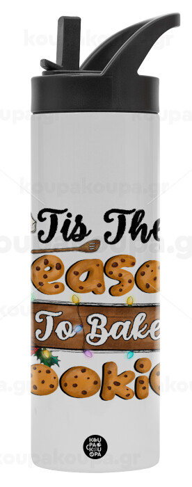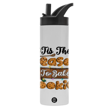 Tis The Season To Bake Cookies, Μεταλλικό παγούρι θερμός με καλαμάκι & χειρολαβή, ανοξείδωτο ατσάλι (Stainless steel 304), διπλού τοιχώματος, 600ml