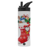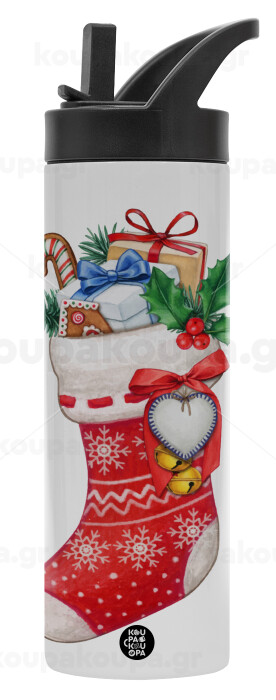 Xmas boot, Μεταλλικό παγούρι θερμός με καλαμάκι & χειρολαβή, ανοξείδωτο ατσάλι (Stainless steel 304), διπλού τοιχώματος, 600ml