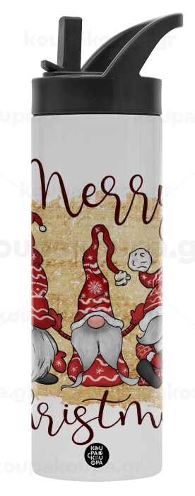 Xmas Elves, Μεταλλικό παγούρι θερμός με καλαμάκι & χειρολαβή, ανοξείδωτο ατσάλι (Stainless steel 304), διπλού τοιχώματος, 600ml