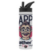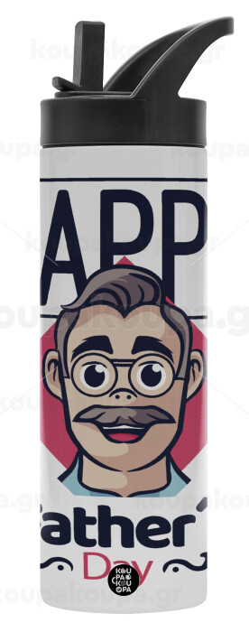 Για την γιορτή του μπαμπά!, Μεταλλικό παγούρι θερμός με καλαμάκι & χειρολαβή, ανοξείδωτο ατσάλι (Stainless steel 304), διπλού τοιχώματος, 600ml